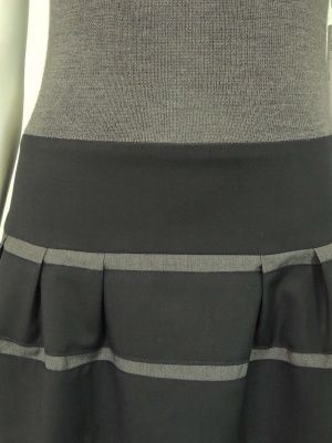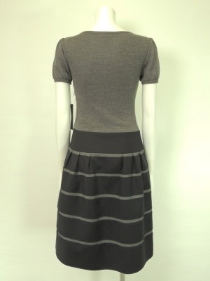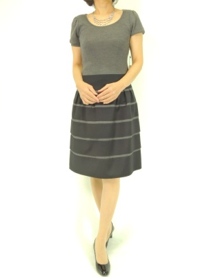 リブニットとふんわりスカートの異素材MIXワンピース。