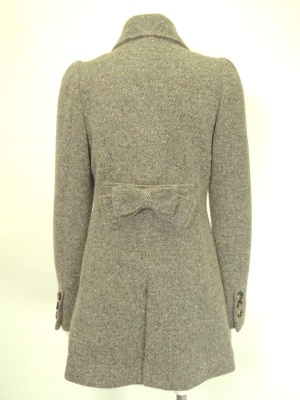後ろのリボンが可愛いツイードコート。