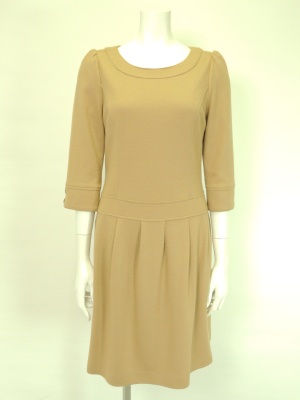 ローウエスト切り替えで上身頃はスッキリ、スカートはふんわりさせたワンピース。