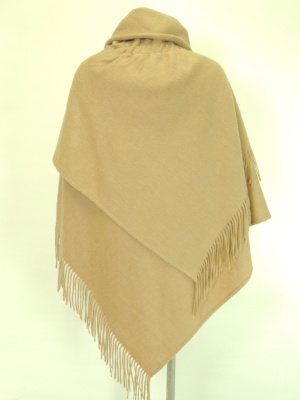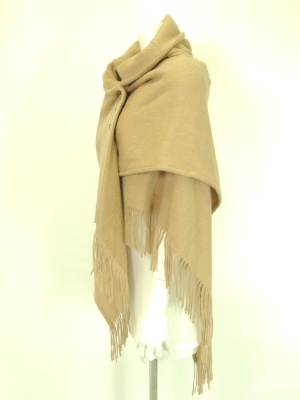 袖を通さないケープは、ドルマンスリーブなどルーズなトップスの上にも羽織れて便利です。