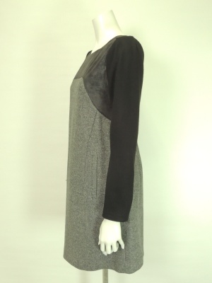 身頃の上はフェイクレザーでお袖はウールの異素材MIX。