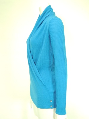 カシュクールタイプのリブニット。