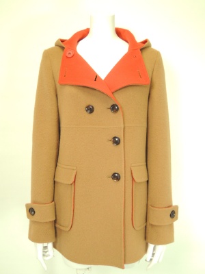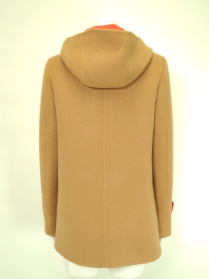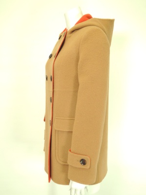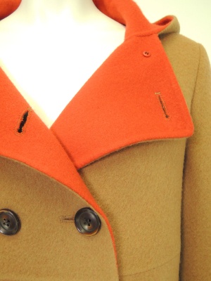 裏の鮮やかな色合いが目を引く、ダブルフェイスのコート。