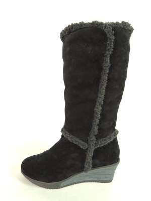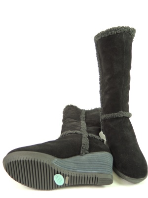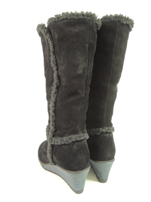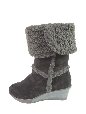 ボアでアクセントを付けたスウェードのミドルブーツ。