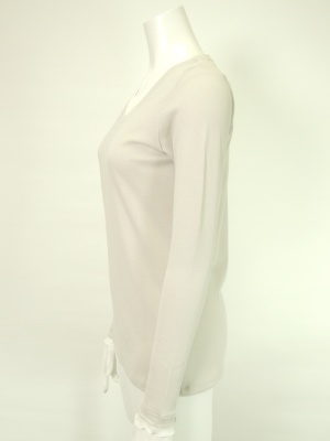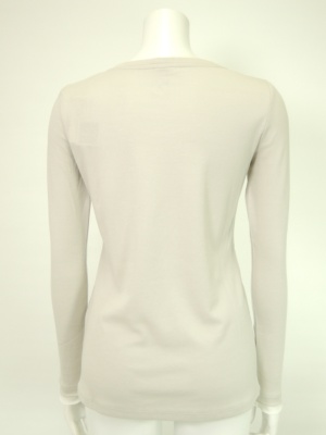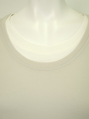 襟ぐりと袖口は重ね着風の仕立て。 白は同色ですが、他の色は重ね着部分は白色を使用。