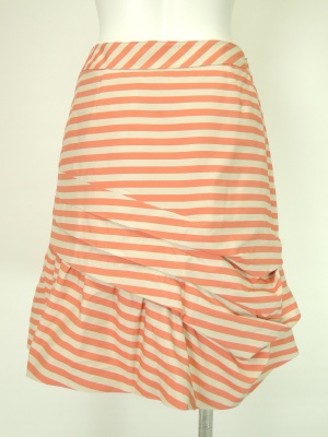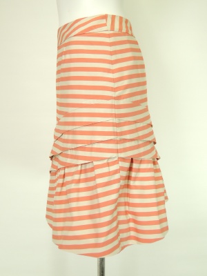 ボーダー柄のスカート。裏地付き。 変形切り替えのデザイン上、ファスナー付けは通常と逆です。