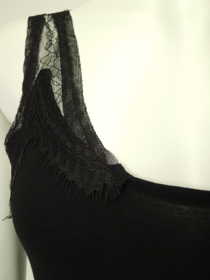 タンクトップの肩のあたりだけレースを使用。ネックラインが大きく開いたトップスのインナーとして。
