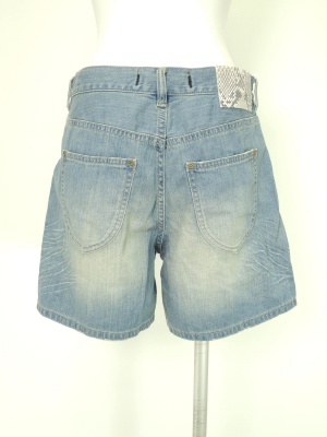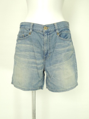 ユーズド風に仕上げたライトオンスデニムのショートパンツ。ゆるく穿くタイプですので大きめに仕上げています。製品洗いの為、サイズに多少の個体差があります。