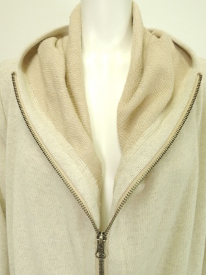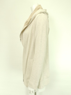 くしゅっとしたフードが個性的なジップアップパーカ。