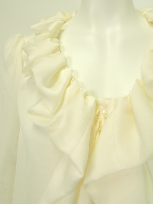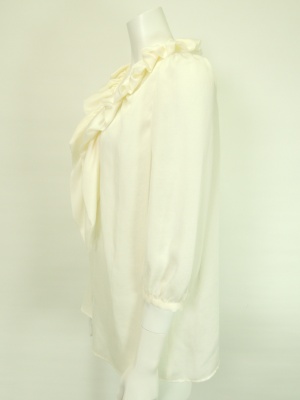 袋状のフリルがふんわりして可愛い、Aラインのブラウス。