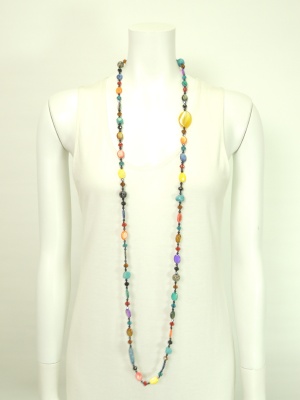 天然石×シェル×グラスビーズのカラフルなロングネックレス。