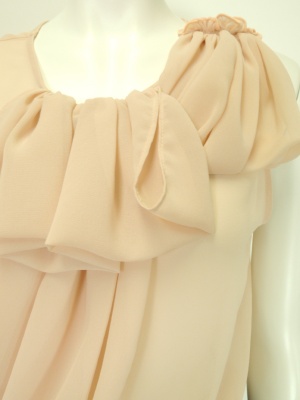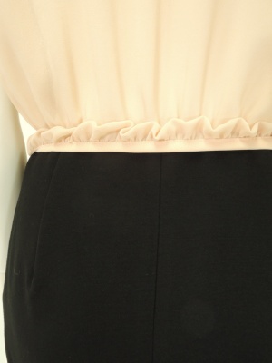 ジョーゼットのブラウスとジャージーのタイトスカートのトリックワンピース。