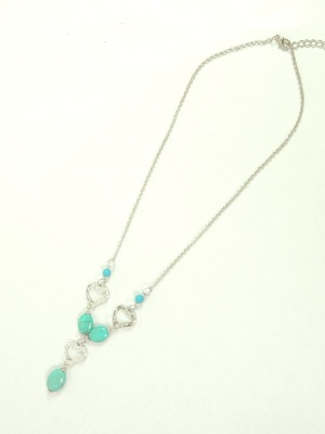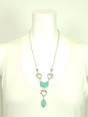 天然石とハート型のパーツで作ったY字ネックレス。