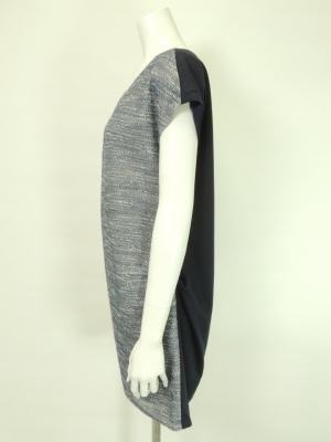 前後で違う生地を使ったワンピース。