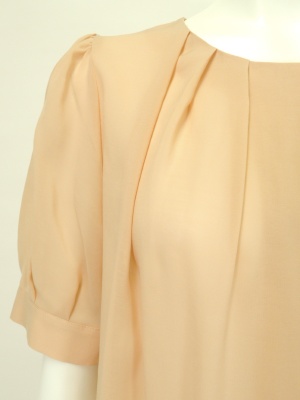 タックを寄せてゆったり仕上げたフェミニンなブラウス。