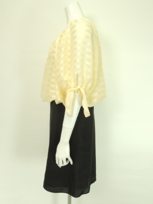 光沢ボーダーのシフォンブラウスと黒のスカートとのトリックワンピース。