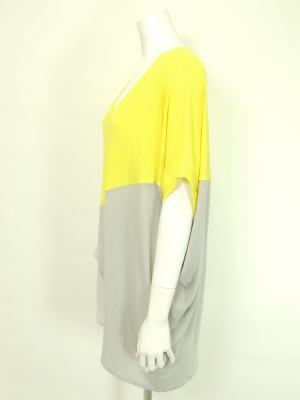 ドルマンスリーブでゆったりしていますが、生地にとろみがあるので広がりすぎません。