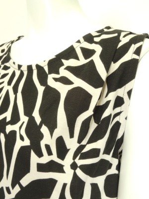 ローウエスト切り替えでコクーンタイプのワンピース。