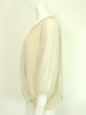 レオパード柄の箔プリントのブラウス。