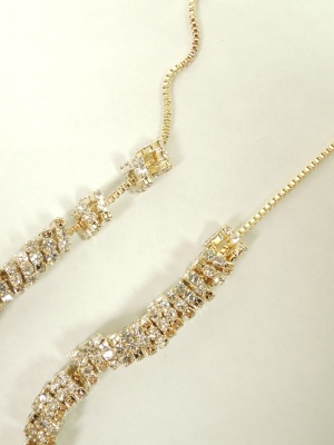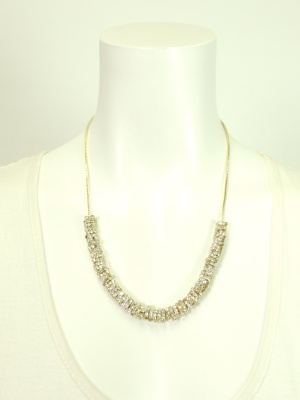 グラスビーズの付いた四角いリングをチェーンにたくさん通したネックレス。