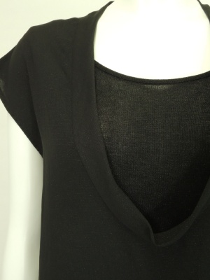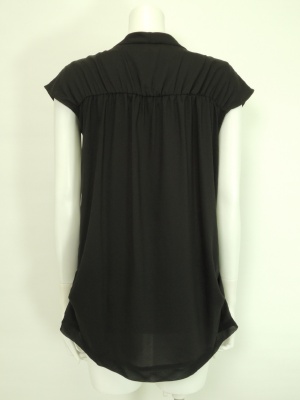 ラメ入りシルバーのタンクトップをインしたブラウス。