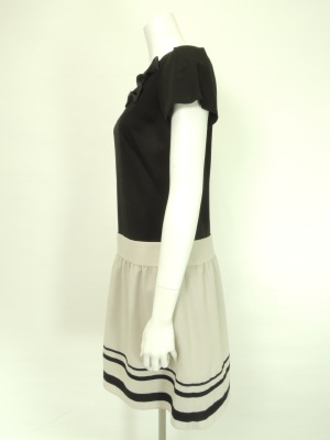 トップスは綿ジャージー、スカートは布帛の切り替えワンピース。