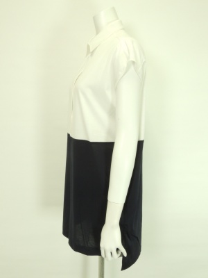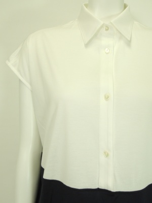 バイカラー切り替えの衿付きカットソー。