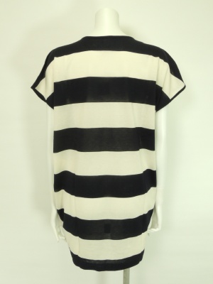 ネイビーとグレージュは太ボーダーで、ベージュとオフホワイトは細ボーダーです。