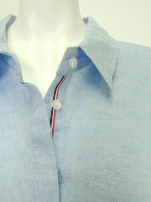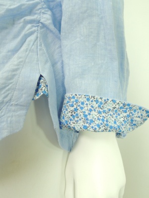 前立ての内側はトリコロールのテープを、カフスと肩ヨークの内側は異素材を使用しています。