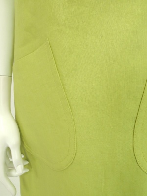 ストンとしたシルエットやパッチポケットがレトロな印象のワンピース。