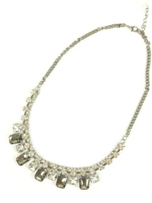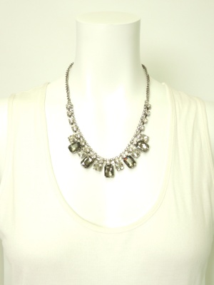 グレーとクリアーのグラスビーズがキラキラ輝く、存在感のあるネックレス。