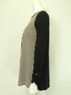 無地部分はカットソー、柄部分はポリエステルの異素材トップス。