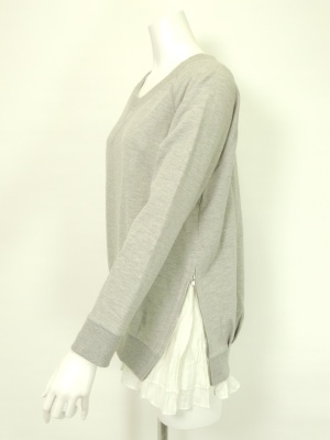 裾からのぞくフリルが可愛いスウェットのトップス。