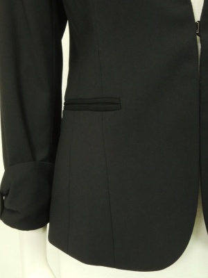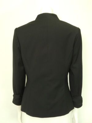 シェイプしたウエストやリボンのような袖口がフェミニンなジャケット。