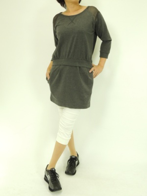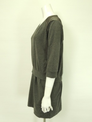 肩のシフォン使いがポイントのスウェットワンピース。(シフォン部分は透けます。)