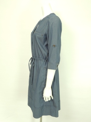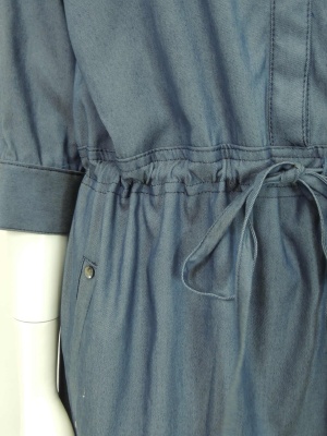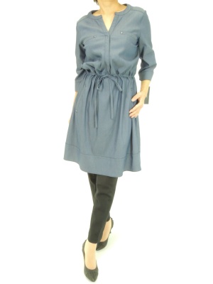 ダンガリーのような色合いのカジュアルなワンピース。