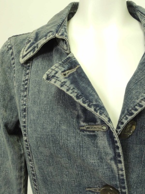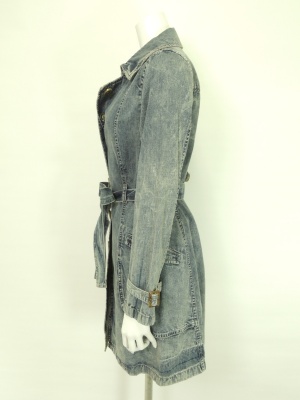 強めにウォッシュ加工したデニムのコート。