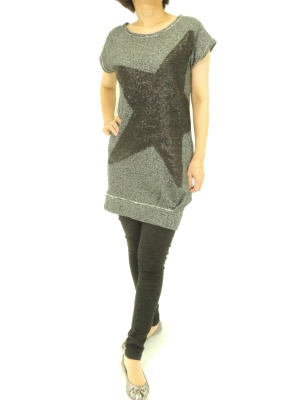 カジュアルなスウェットワンピに、スパンコールぎっしりの大きな星を大胆に配置。