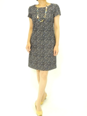 表面に凹凸のある生地のシンプルなワンピース。