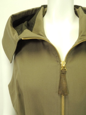 フードみたいな衿がポイントのジャンパースカート。