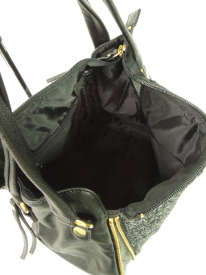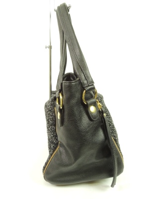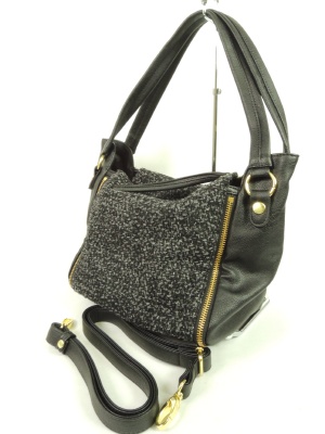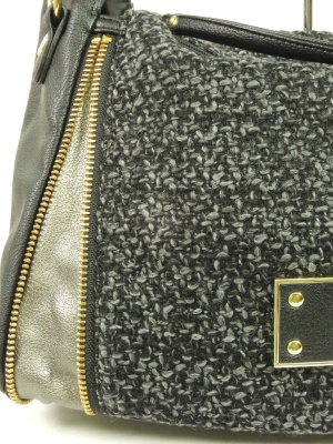 温かみのあるブークレとフェイクレザーのショルダーバッグ。