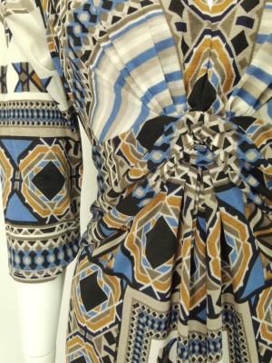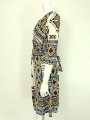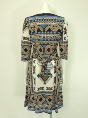 スカーフのような柄のジャージーワンピース。