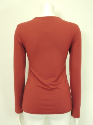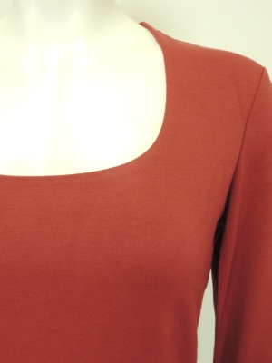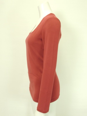 綺麗に開いたネックラインで、インナーに使いやすいストレッチカットソー。
