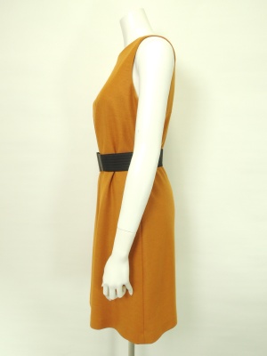 ベルトでウエストマークするシンプルなワンピース。