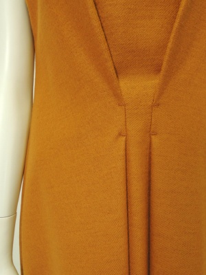 ウエストマークした時に綺麗なシルエットになるよう、ウエストにタックを寄せています。