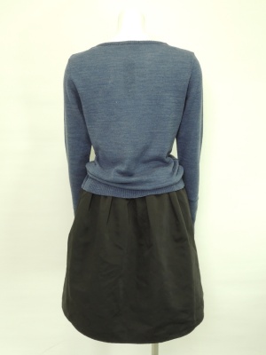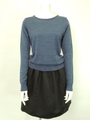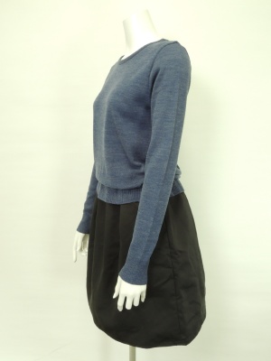 ウエストゴムのスカートはウエストでとまるので、ニットの裾が自然とくしゅっとします。