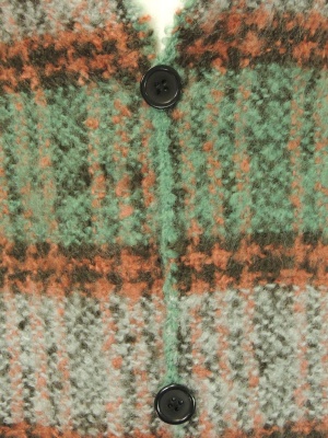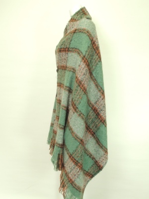 チェックの大判ストールで、ボタンを留めるとポンチョになります。