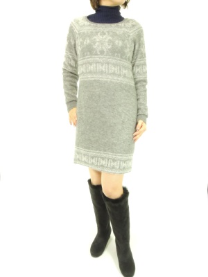 mimi&rogerオリジナルのノルディック調の柄をパイル編みで表現したニットワンピース。
