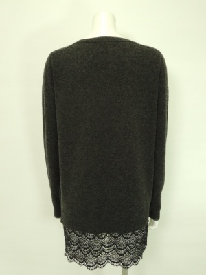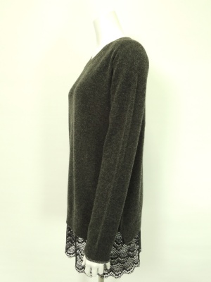 裾の柔らかなレースがポイントのロングニット。
