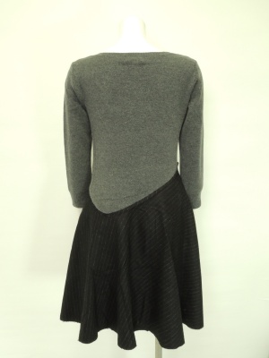 ストライプのサーキュラースカートをニットにドッキングしたワンピース。